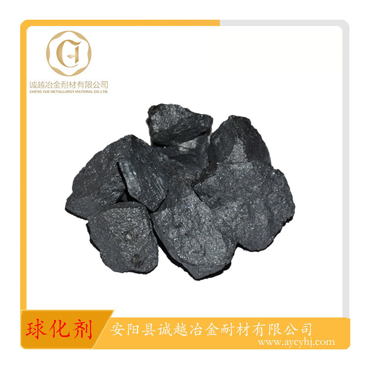 球化劑是使鑄鐵中的石墨呈球狀析出的鐵水添加劑。應用于鑄鐵鑄造領域。含鎂量4%、5%、5.5%屬于低鎂球化劑,RE在1%-2%之間,多用于中頻爐熔煉、低硫鐵液的球化處理。它具有球化反應和緩、球化元素易于充分吸收的優點。 含鎂量6%、7%屬中鎂系列球化劑,多用于沖天爐、電爐雙聯熔煉,或中頻爐熔煉珠光體型鑄態球墨鑄鐵鑄件。根據鑄件壁厚和原鐵水含硫量,確定合適的球化劑加入量,適用范圍廣,球化處理工藝寬泛。 高鎂系列球化劑,適合沖天爐熔煉、含硫量0.06%-0.09%的鐵液,加入量在1.6%-2.0%之間。 低鋁球化劑使用于容易產生皮下氣孔缺陷的鑄件,以及對鐵液含鋁量有要求的鑄件。 純Ce、純La生產的球化劑,球化處理后鐵液純凈夾雜物少、石墨球圓整。釔基重稀土生產的球化劑適合于大斷面鑄件,延緩球化衰退、防止塊狀石墨。含Sb球化劑用于珠光體型球墨鑄鐵。 低硅球化劑適用于使用大量回爐料的鑄造工廠;鎳鎂球化劑則用于高鎳奧氏體球墨鑄鐵。